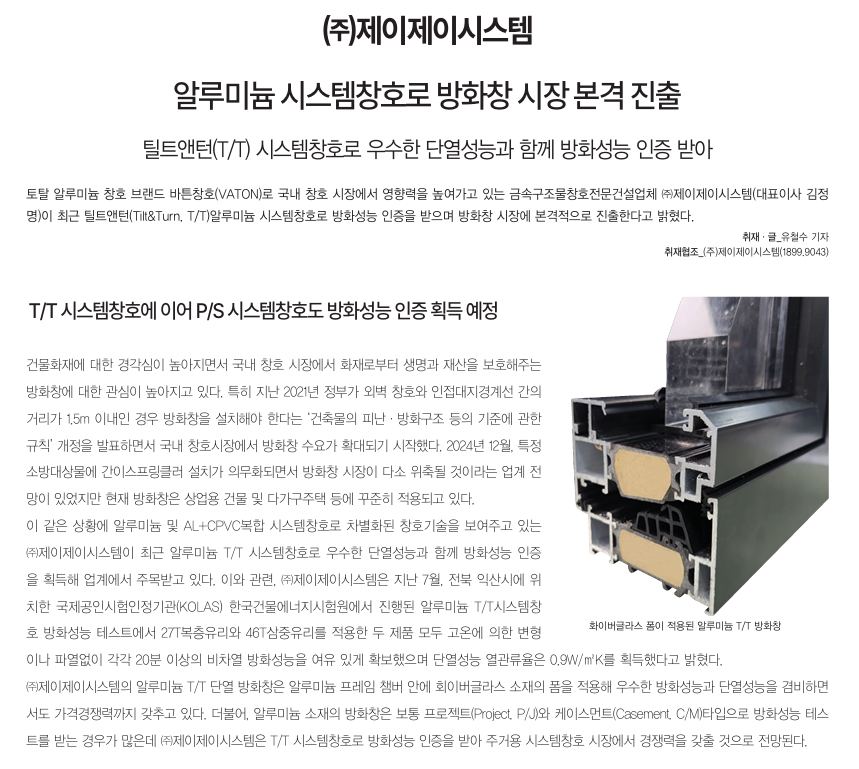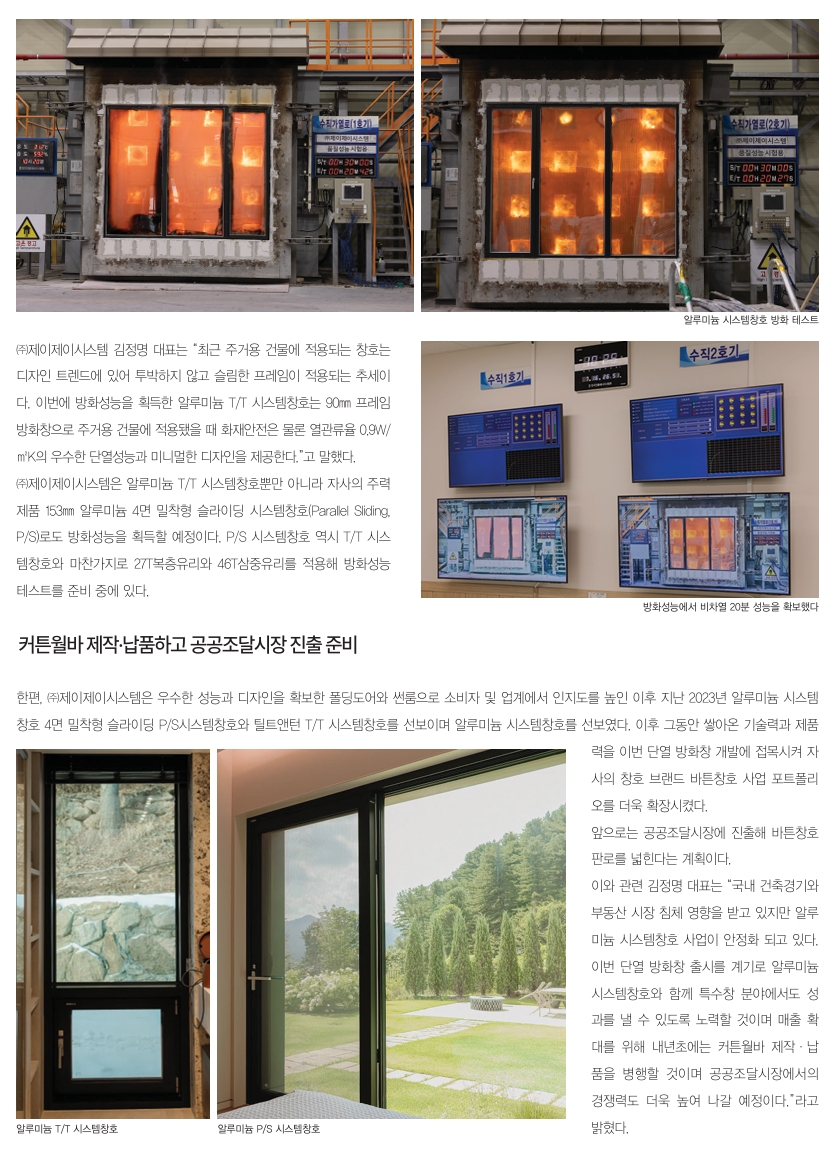 알루미늄 시스템창호로 방화창 시장 본격 진출