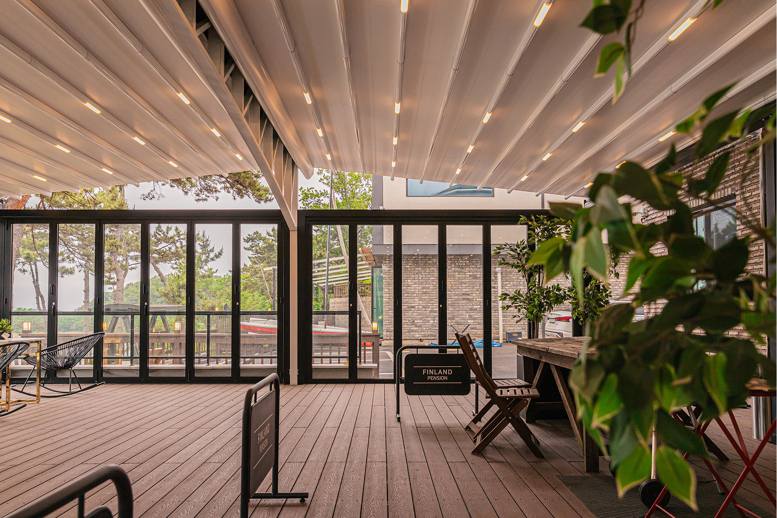 썬룸 마감 옵션으로 폴딩도어를 시공하면