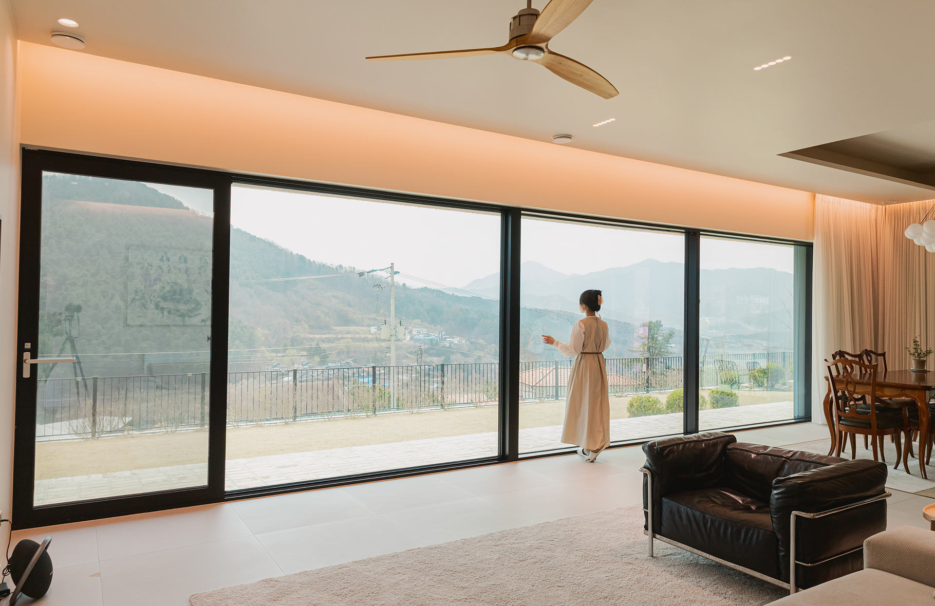 단일 큰 유리 패널로 구성되어 경치 감상과 자연광 공급이 용이하며, 효과적인 통풍과 세련된 디자인으로 고급스러운 인테리어를 제공합니다.