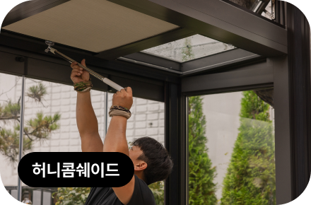 시스템도어와 창호로 측면을 마감하고 허니콤쉐이드로 완성했습니다.