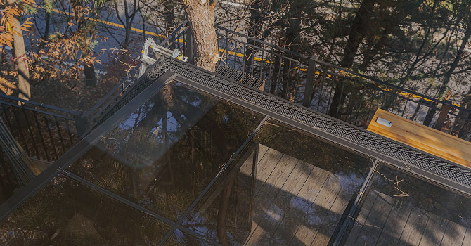빗물이 고이지 않도록 설계된 처마와 효율적인 배수 시스템은 지붕에서 쏟아지는 빗물이나 썬룸 내부로의 침수를 완벽하게 방지합니다. 모든 부품은 썬룸과 조화를 이루도록 디자인되어 미관을 해치지 않으면서 기능성을 극대화합니다.